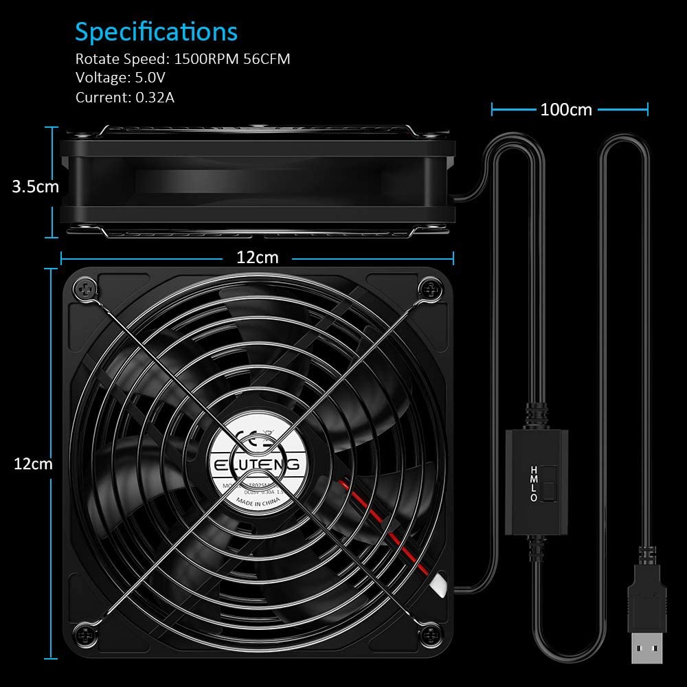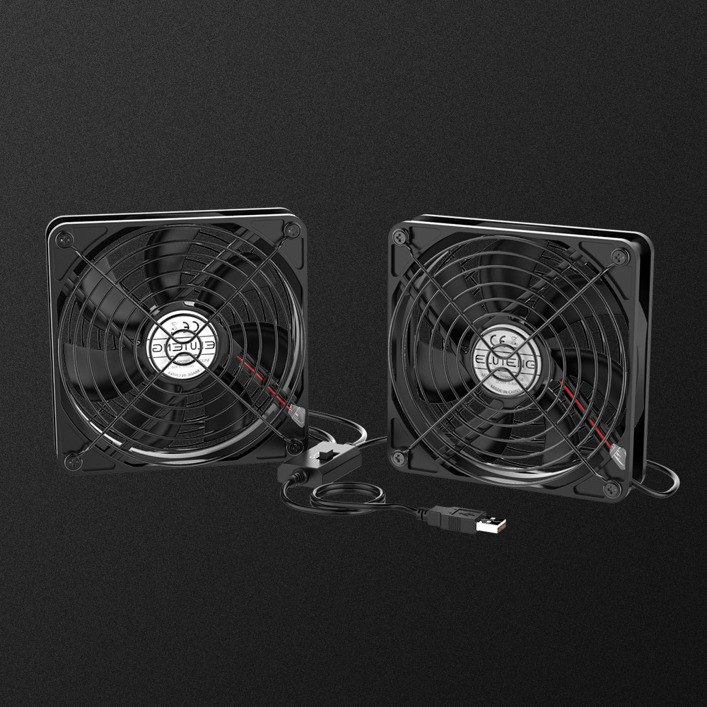 ELUTENG USB Fan 120mm Fan USB Computer Fan 1500RPM 56CFM 5V Fan USB Dual Fan - 2 In 1 Cooling Radiator with Black Metal Grill Cooling Fan for PC/ PS4/ Xbox/TV Box/Laptop/AV Cabinet etc. (Black)