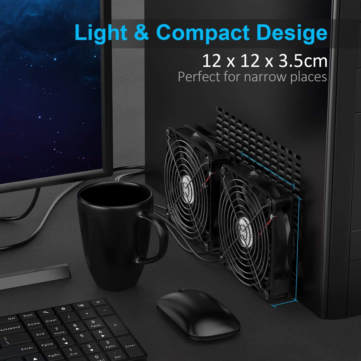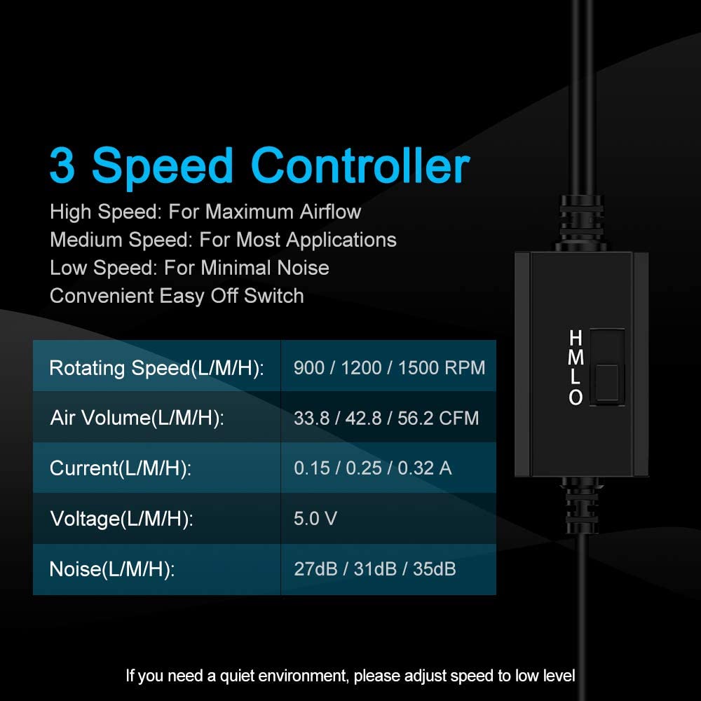 [Wide Application] 7 blades, airflow 56CFM and rotate speed 1500RPM each fan, perfect for cooling PC/Laptop/PS4/xBox/TV Box/Receiver/AV cabinet/Projector/Router etc.