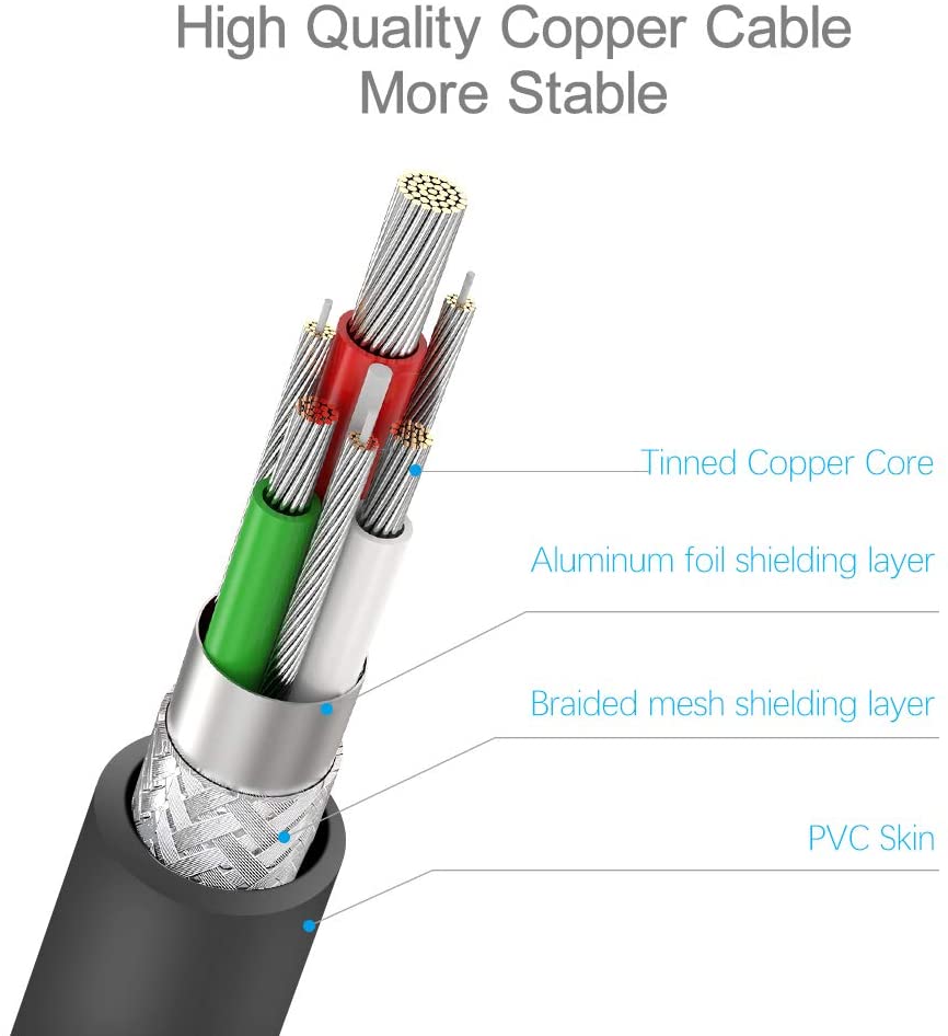 [Transmission stability] The high-purity oxygen-free copper wire core is tinned to reduce transmission loss and make the transmission more stable.